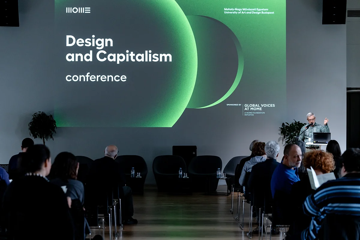 Ezzel a felütéssel hívta szakmai eszmecserére a designkultúra kutatóit, művelőit és egyetemi hallgatóit a Designkultúra- és Művészettudományi Tudásközpont kétnapos konferenciája Design és Kapitalizmus címmel. A több, mint negyven előadó között az egyetem több központjából, labjából és a Doktori Iskolából érkező kutatók mellett több hazai egyetem is képviseltette magát. A konferencia keynote előadói Babarczy Eszter és prof. Szentpéteri Márton, valamint a nagysikerű Design after Capitalism. Transforming Design Today for an Equitable Future című kötet szerzője, Matthew Wizinsky voltak. Wizinsky előadásában hangsúlyozta, hogy a designnak túl kell lépnie a kapitalizmus logikáján, majd a tervezői tevékenység új, közösségi és demokratikus rendszerbe ágyazásával kapcsolatban gyakorlati irányelveket is felvillantott. Az esemény tematikus sokszínűségét mutatja, hogy a természeti VR applikációktól (Bakk Ágnes) és a kibernetikai designtól (Őze Sándor) kezdve, a feminista szexpozitív etikán (Szabó Eszter) és az IKEA-paradigmán (Veres Bálint, Fiáth Henrietta. Miklósi Ádám) keresztül egészen a társadalmilag érzékeny és fogyatékos csoportok számára való tervezésig (Pintérné Sosity Beáta) bezárólag hallgathattunk előadásokat; miközben a kerekasztal beszélgetések a kapitalizmus logikájával szembeni alternatív praxisokat (Cosovan Attila, Fenyvesi Bori, Kapitány Ágnes és Gábor), a regeneratív designt (Göttler Anna, Temesi Apol, Mester Attila, Hámori Péter), a gyerekcsoportokkal közös tervezést (Gyurkó Szilvia), vagy a designerek felelősségének kérdéskörét (Bujdosó Attila, Fogarasy Tamás, Ferenczi Bálint) járták körül. A konferencia anyagából a Designkultúra- és Művészettudományi Tudásközpont szakmailag lektorált tanulmánykötet kiadását tervezi 2026-ban.
